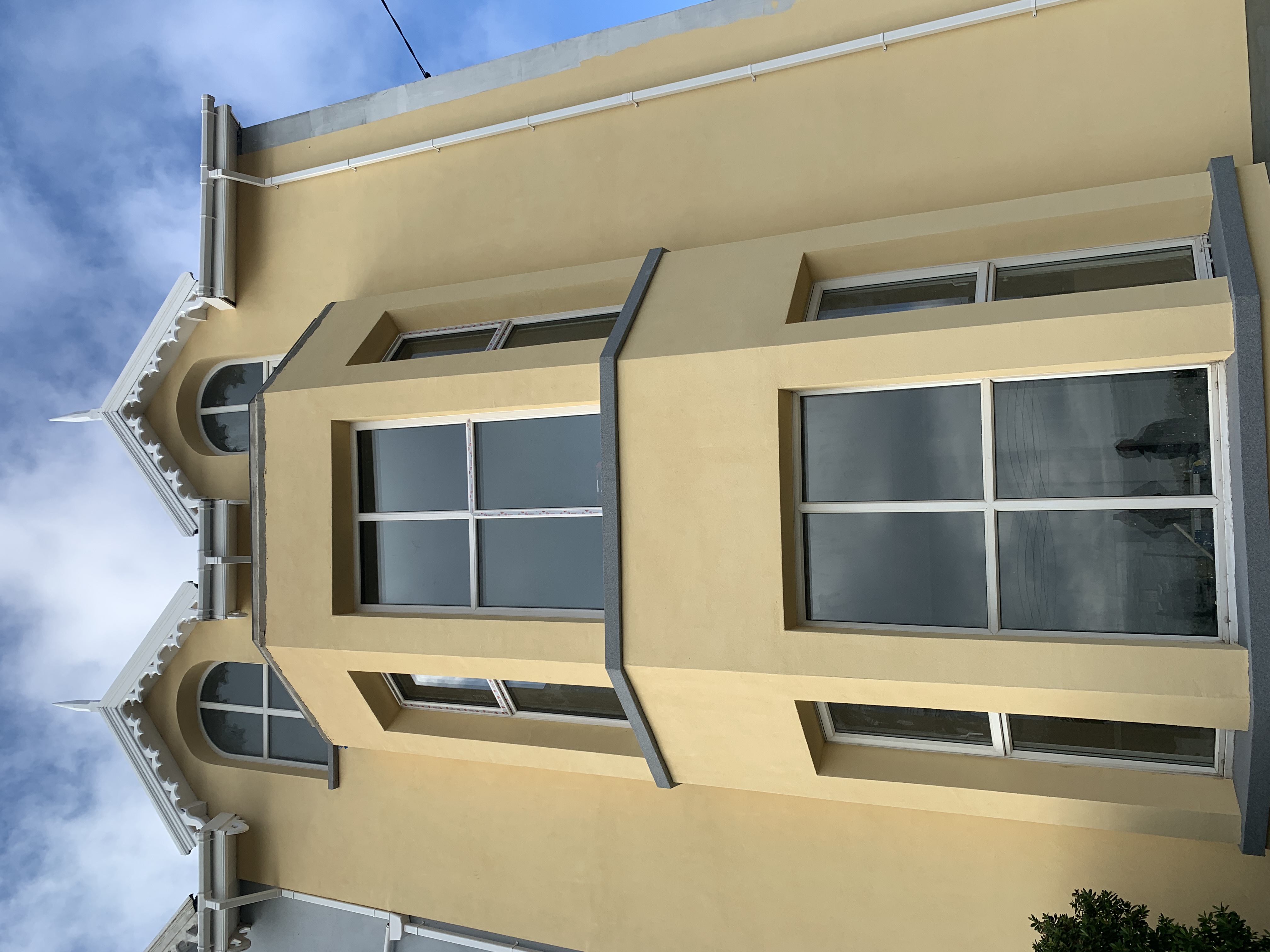 Final Render Coat applied and all scaffolding away ; ready for feature copings & corner quoin-stones.