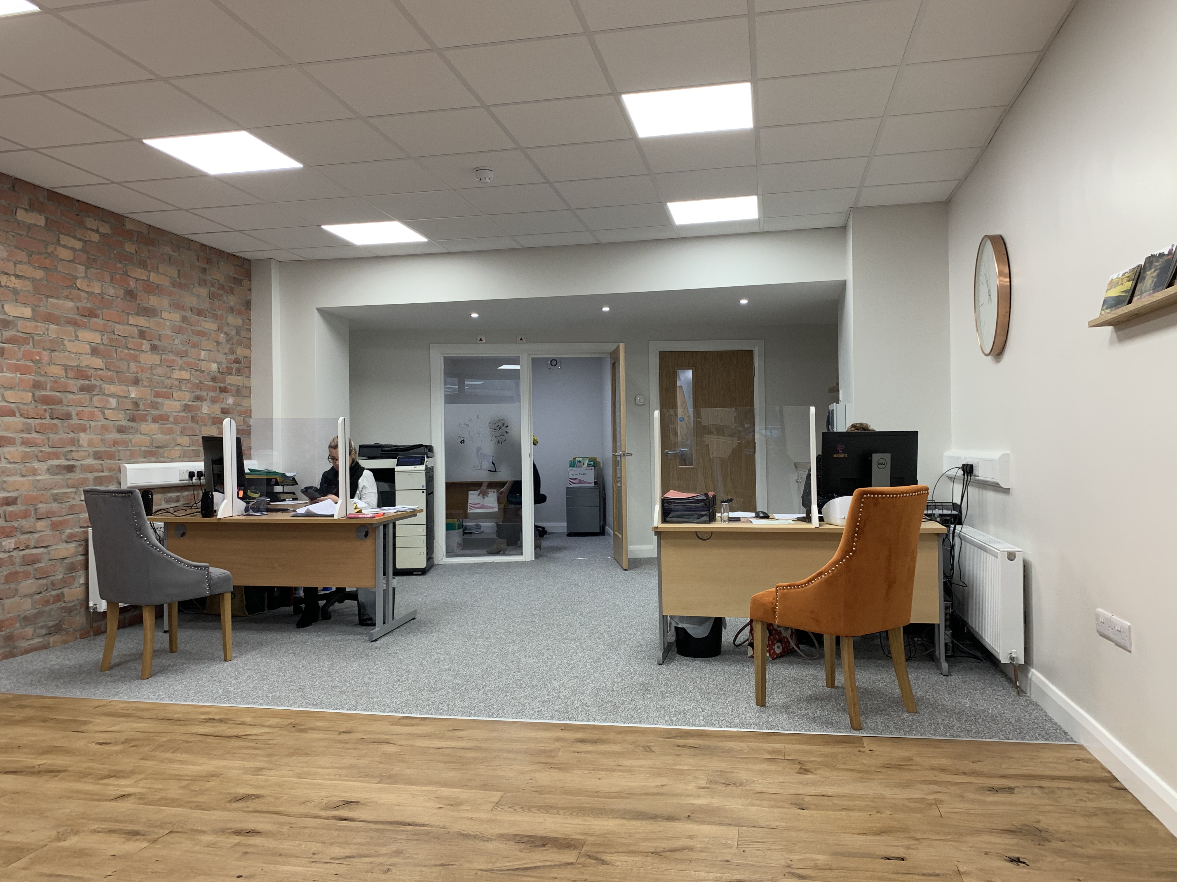 There is also a one-to-one office with glazed screen looking out to the shop floor for private consultations with clients along with a refreshments area. The upper floors, which were a mix of storage for the old shop and living accommodation have been changed to private offices, staff toilets, a staff canteen and file storage rooms.