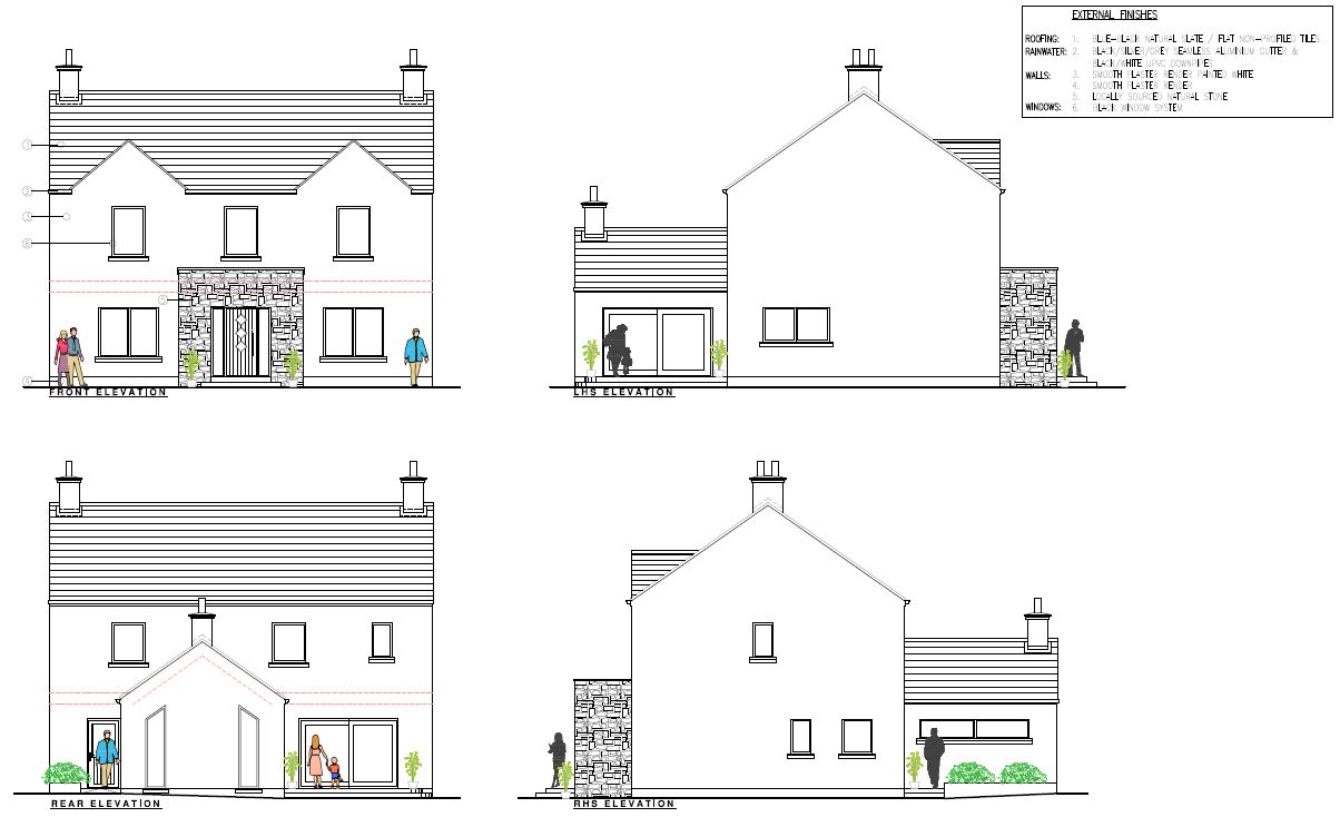 This is a modern take on a traditional countryside former farmhouse, this dwelling features a simple 2-storey with feature dormer-peaks, flat roof, stone-clad porch & single-storey vaulted living room outshot to the rear😲